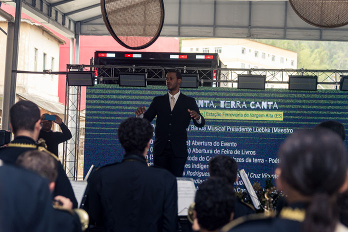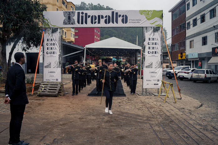 A abertura da Literalta, às 9h, contou com uma bonita apresentação da Banda Musical Presidente Lüebke, do Maestro João Netto, formada por alunos da Escola Estadual de Ensino Fundamental e Médio (EEEFM) Presidente Lüebke, de Vargem Alta.
